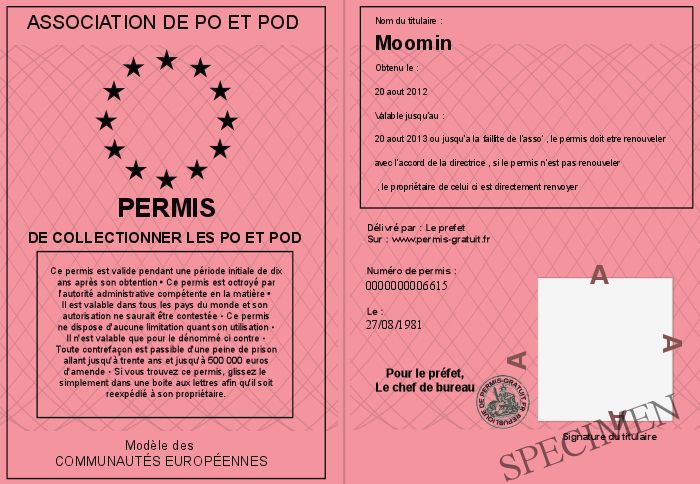 Envoyez par email le Permis de Collectionner les po et pod personalisé