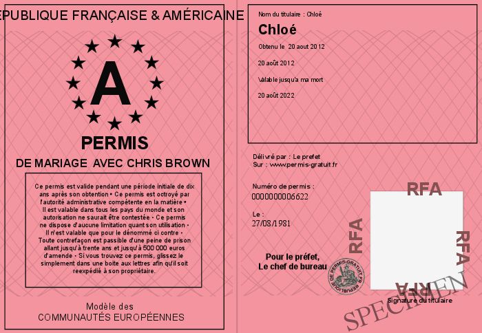 Envoyez par email le Permis de mariage avec Chris Brown personalisé