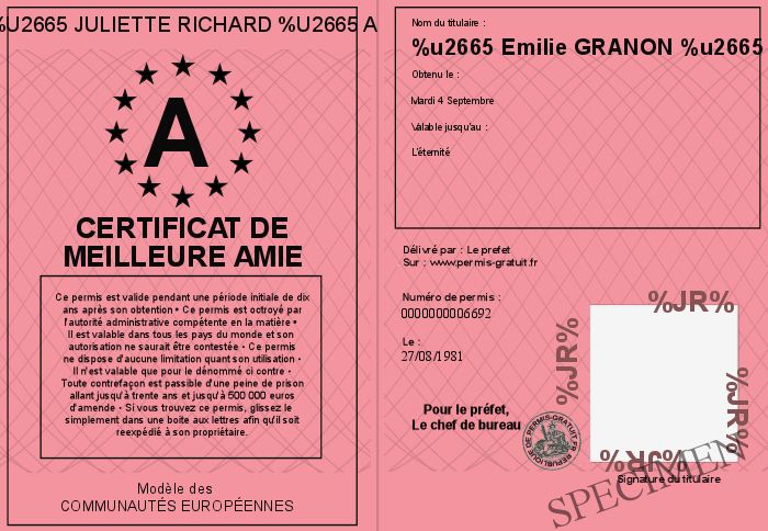 Envoyez par email le Certificat De Meilleure Amie personalisé