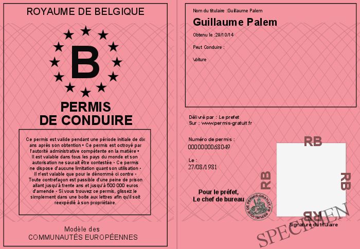 Envoyez par email le Permis de conduire personalisé