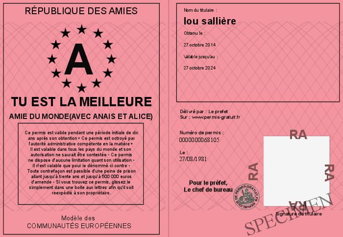 Envoyez par email le tu est la meilleure amie du monde(avec anais et alice) personalisé