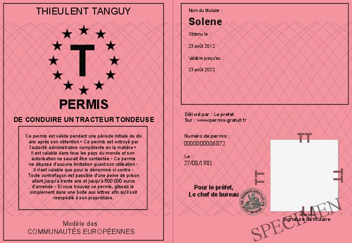 Envoyez par email le Permis de conduire un tracteur tondeuse personalisé