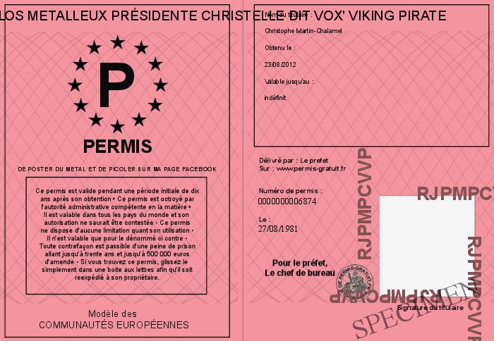 par la République DES JOYEUX PICOLOS METALLEUX Présidente Christelle dit Vox' Viking Pirate !