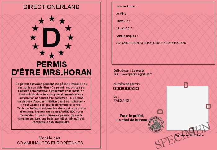 Envoyez par email le Permis d'être Mrs.Horan personalisé