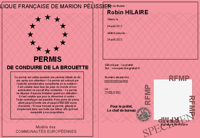Envoyez par email le Permis de conduire de la brouette personalisé