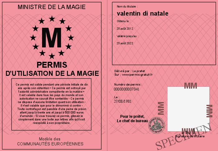 Envoyez par email le permis d'utilisation de la magie personalisé