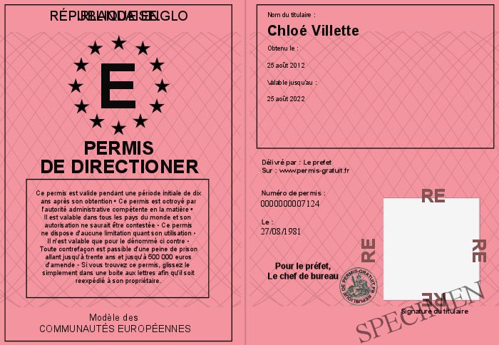 Envoyez par email le Permis de Directioner personalisé