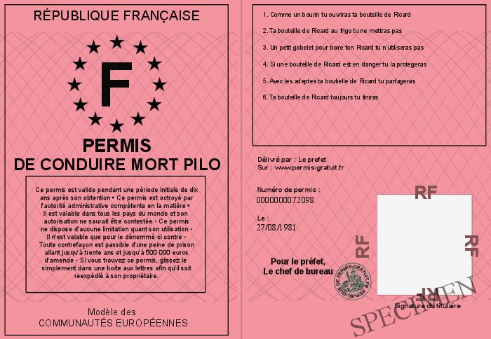 Envoyez par email le Permis de conduire mort pilo personalisé