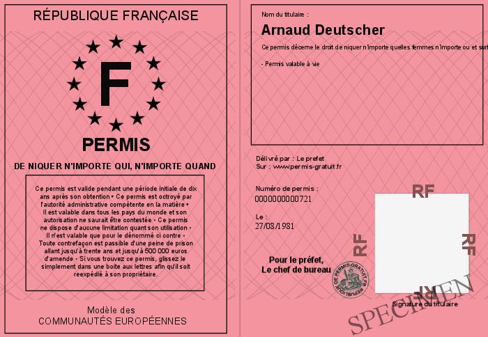 Envoyez par email le Permis de niquer n'importe qui, n'importe quand personalisé