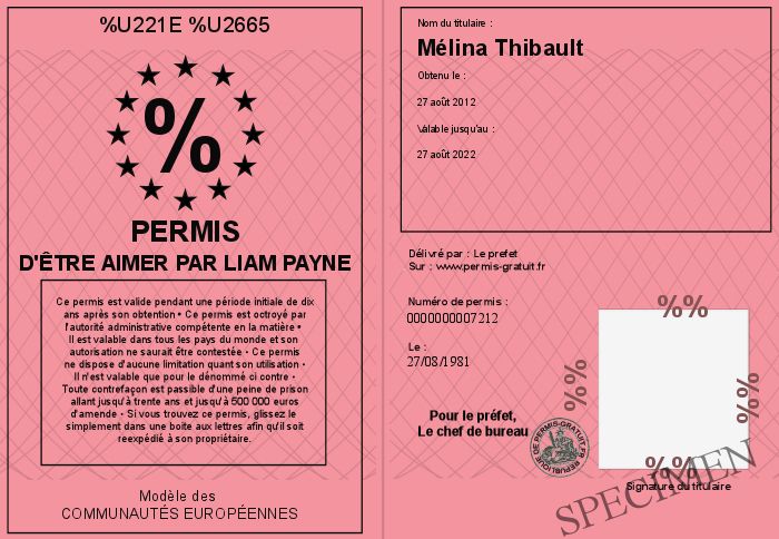Envoyez par email le Permis d'être aimer par Liam Payne personalisé