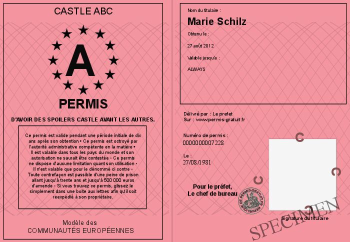 Envoyez par email le Permis d'avoir des spoilers Castle avant les autres. personalisé