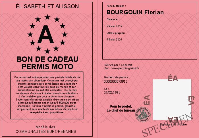 Envoyez par email le Bon de cadeau Permis moto personalisé