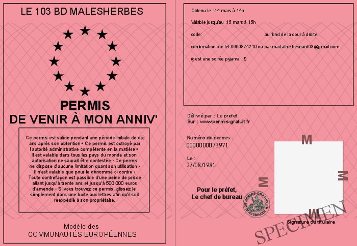Envoyez par email le Permis de venir à mon anniv' personalisé