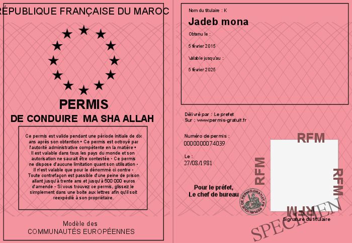 Envoyez par email le Permis de conduire ma sha allah personalisé
