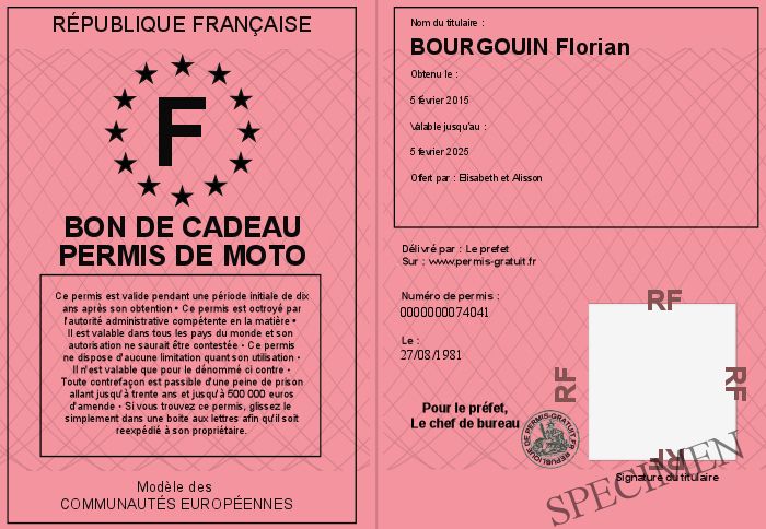 Envoyez par email le Bon de cadeau Permis de moto personalisé