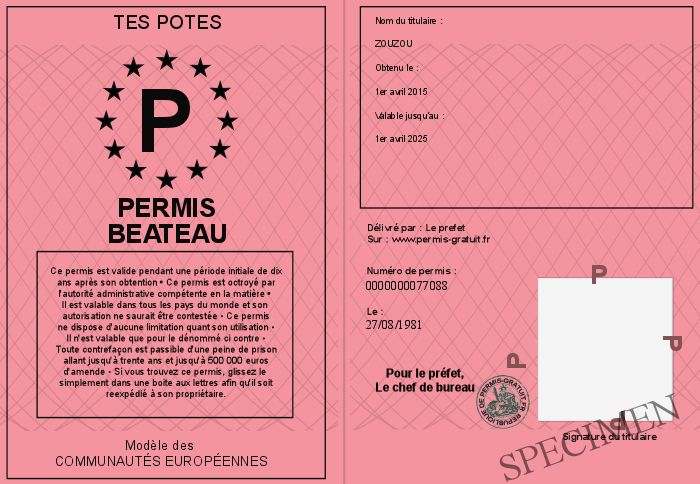 Envoyez par email le Permis beateau personalisé par la Tes potes ! Personnaliser mon permis