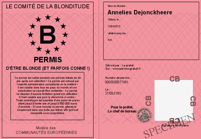 Envoyez par email le Permis d'être blonde (et parfois conne !) personalisé