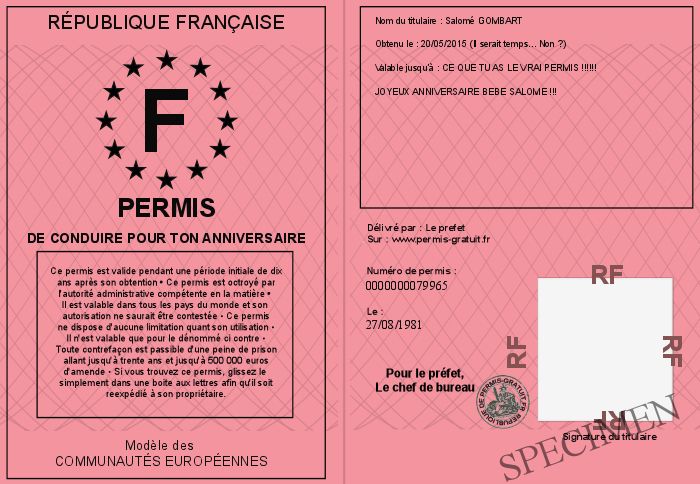 Envoyez par email le Permis de conduire pour ton Anniversaire personalisé