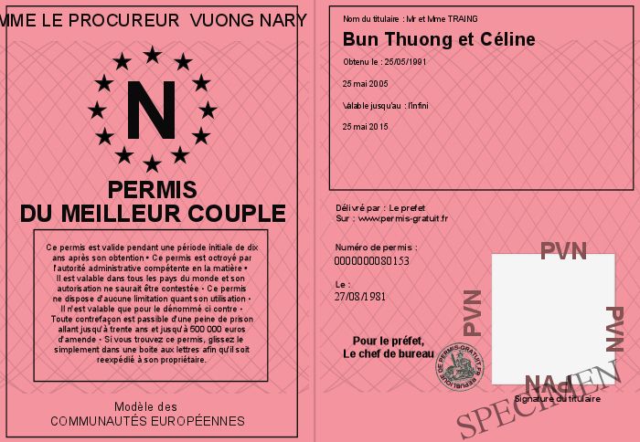 Envoyez par email le Permis du meilleur couple personalisé