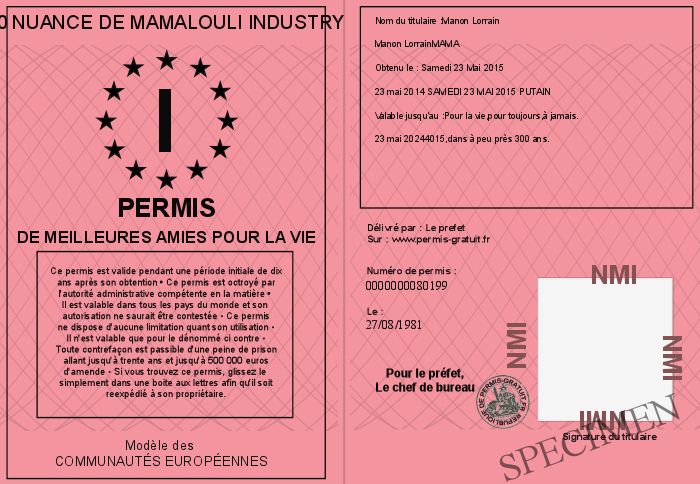 Envoyez par email le Permis de meilleures amies pour la vie personalisé