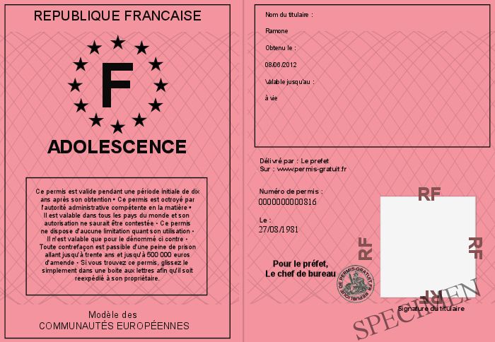 Envoyez par email le adolescence personalisé par la REPUBLIQUE FRANCAISE ! Personnaliser mon permis