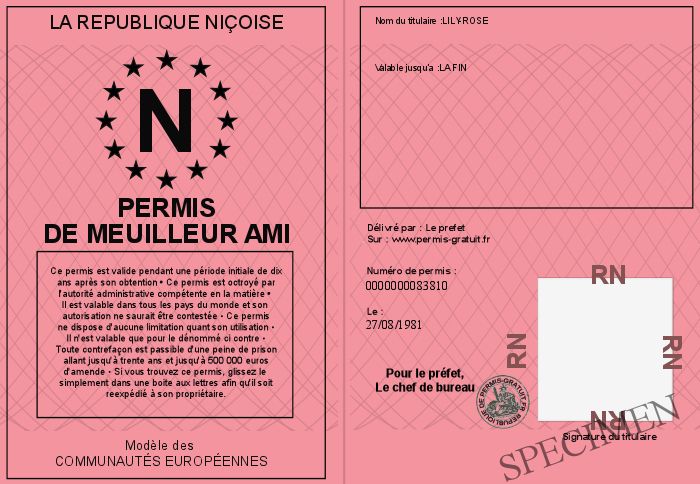 Envoyez par email le Permis de MEUILLEUR AMI personalisé