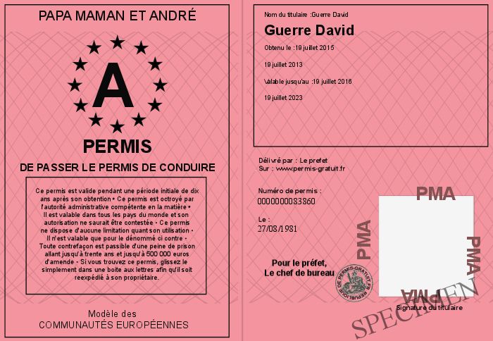 Envoyez par email le Permis de passer le Permis de conduire personalisé