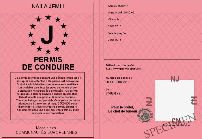 Envoyez par email le Permis de conduire personalisé par la Naila JEMLI ! Personnaliser mon permis