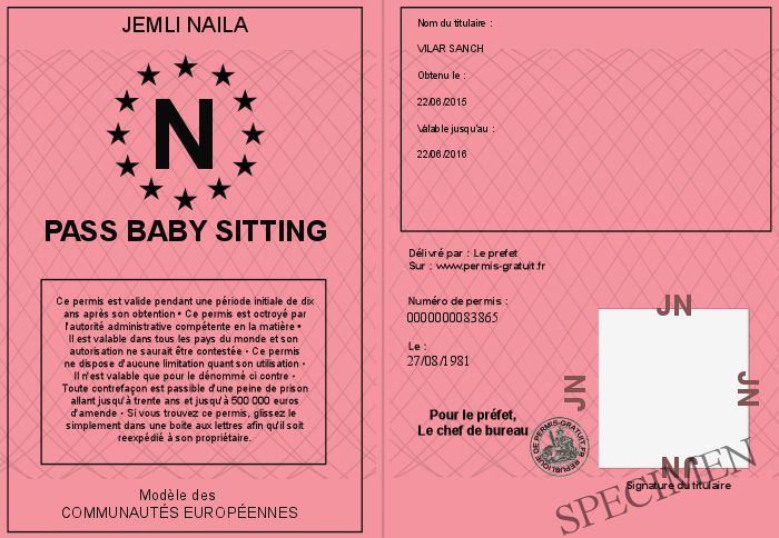Envoyez par email le Pass Baby sitting personalisé par la Jemli Naila ! Personnaliser mon permis