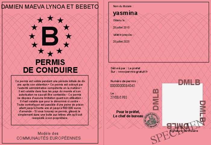 Envoyez par email le Permis de conduire personalisé