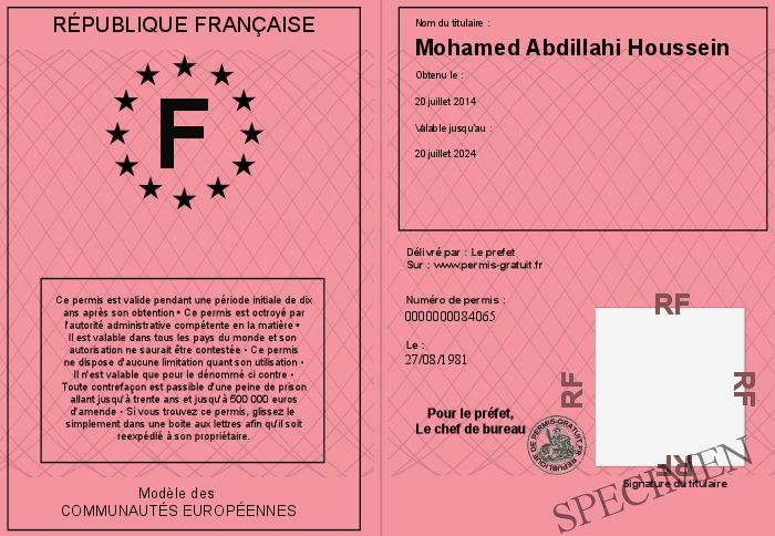 Envoyez par email le personalisé par la République Française ! Personnaliser mon permis