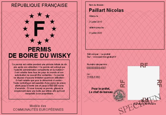 Envoyez par email le Permis de boire du Wisky personalisé