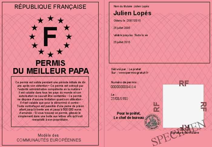 Envoyez par email le Permis du meilleur Papa personalisé