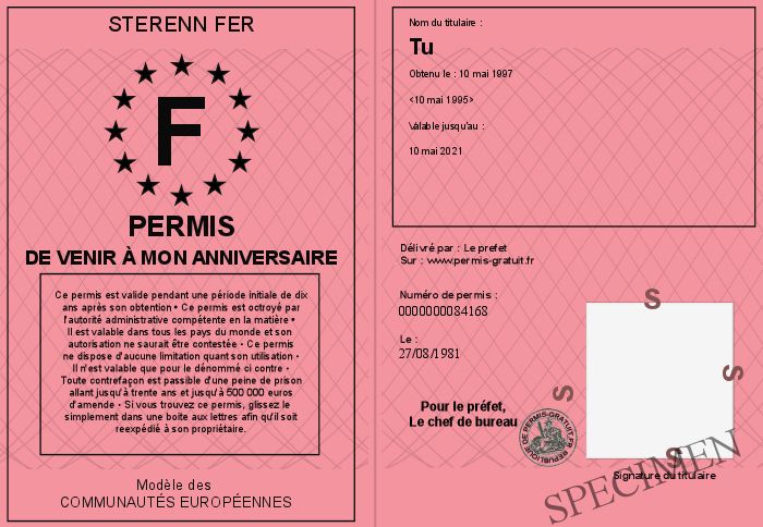 Envoyez par email le Permis de venir à mon anniversaire personalisé