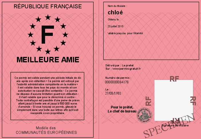 Envoyez par email le meilleure amie personalisé par la République Française ! Personnaliser mon permis