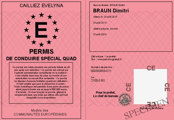 Envoyez par email le Permis de conduire spécial quad personalisé