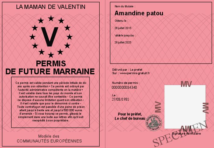 Envoyez par email le Permis de future marraine personalisé