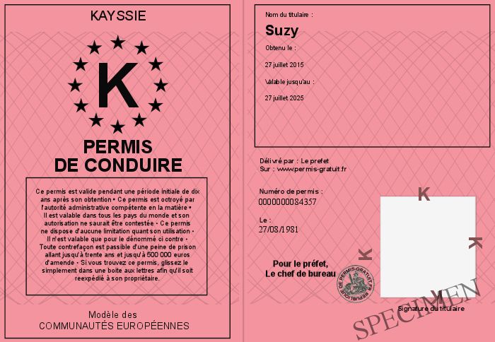 Envoyez par email le Permis de conduire personalisé par la Kayssie ! Personnaliser mon permis