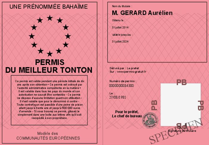 Envoyez par email le Permis du meilleur tonton personalisé