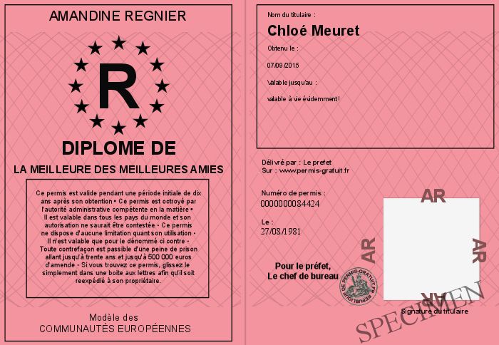 Envoyez par email le diplôme de la meilleure des meilleures amies personalisé