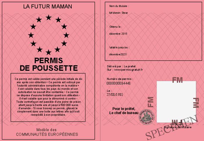 Envoyez par email le Permis de poussette personalisé par la la futur maman ! Personnaliser mon permis