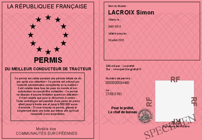 Envoyez par email le Permis du meilleur conducteur de TRACTEUR personalisé