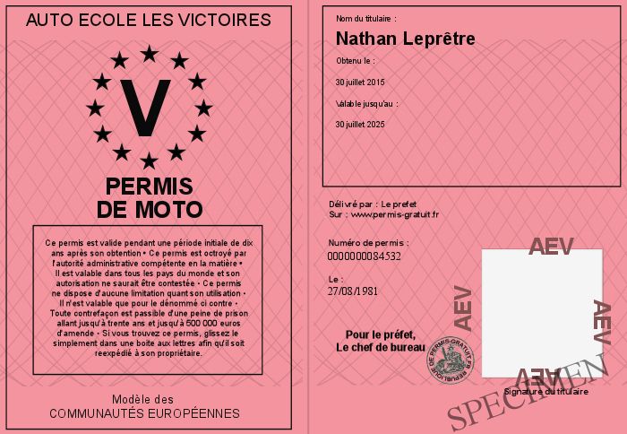 Envoyez par email le Permis de moto personalisé