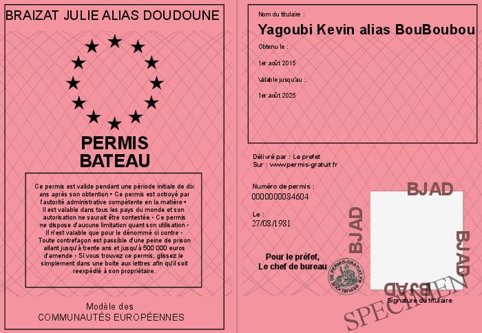 Envoyez par email le Permis bateau personalisé