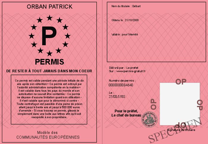 • Permis de rester à tout jamais dans mon coeur