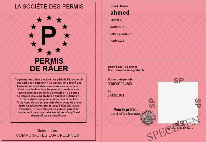 Envoyez par email le Permis de râler personalisé