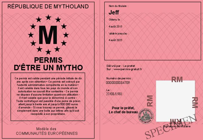 Envoyez par email le Permis d'être un mytho personalisé