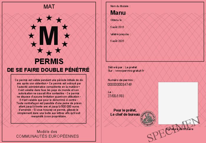 Envoyez par email le Permis de se faire double pénétré personalisé
