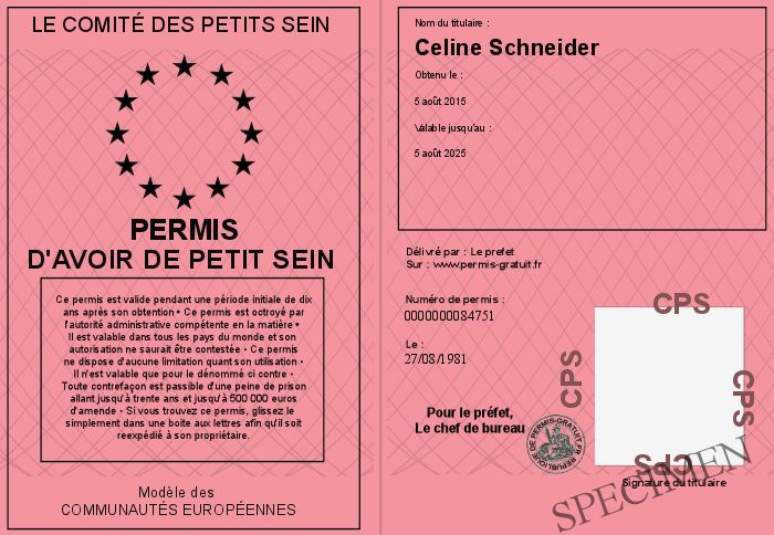 Envoyez par email le Permis d'avoir de petit sein personalisé