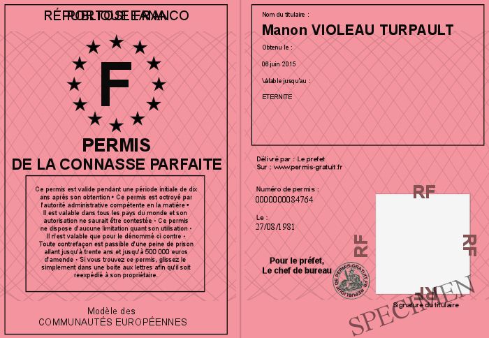 Envoyez par email le Permis de LA CONNASSE PARFAITE personalisé